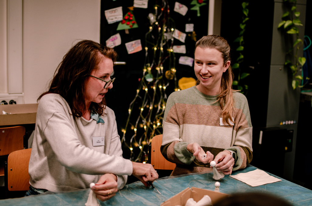 Dann haben die Kinder gebastelt. Man konnte Sterne, Rentiere, Weihnachtstüten und Weihnachtsklammern in