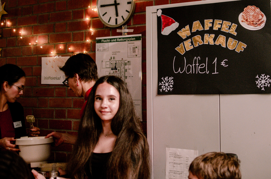 Am 12.12.2025 war bei uns an der Immenhoferschule das Lichterfest. Es waren viele Leute da: Schülerinnen und Schüler, Eltern, Geschwisterkinder, Lehrerinnen und Lehrer und auch Schülerinnen und Schüler, die früher bei uns an der Immenhoferschule waren.