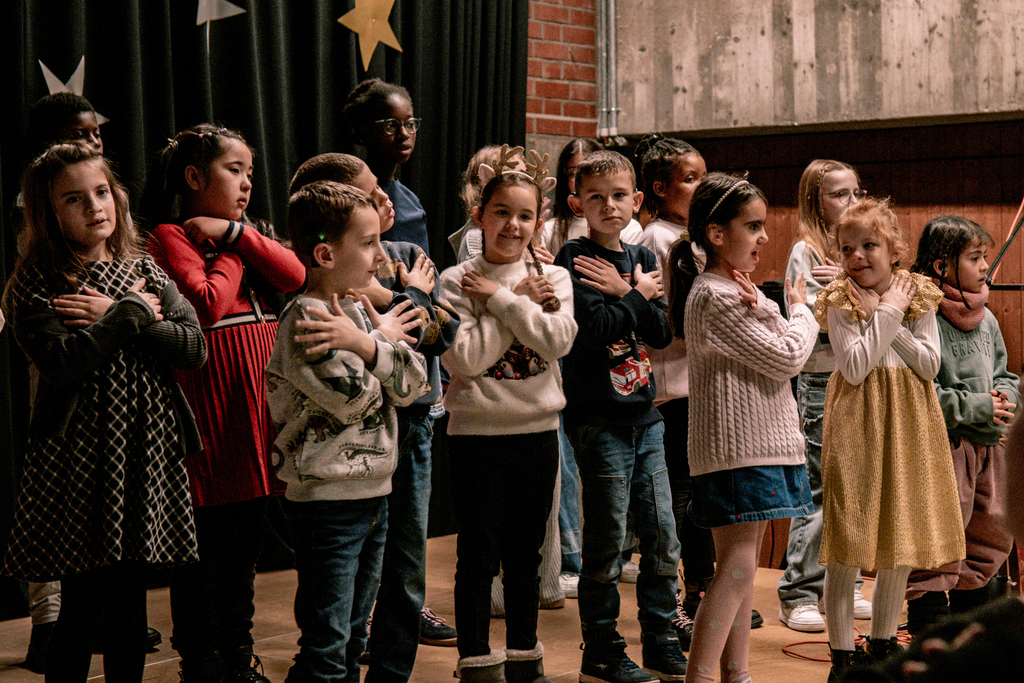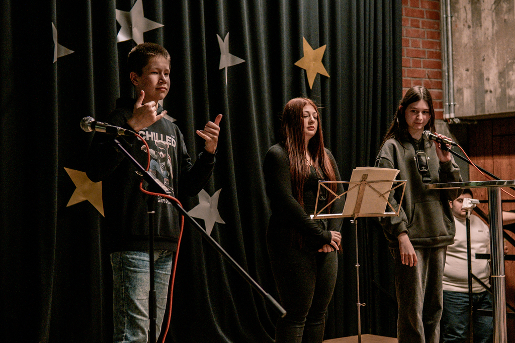 In der Turnhalle hab es ein kleines, weihnachtliches Programm auf der Bühne. Der Grundschulchor hat zwei Weihnachtsliedergesungen, die Tanzgruppe hat ihren einstudierten Tanz aufgeführt und es gab ein Kahoot-Rätsel, an dem viele motiviert miträtselten.